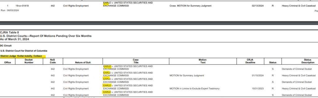 My lawsuit is Earle v. United States Securities and Exchange Commission, Jay Clayton, et al. (now, v. Gary Gensler, et al.). Case No. 1:19-cv-01419 (U. S. District Court, District of Columbia). All public case documents are on PACER (Public Access to Court Electronic Records). [I am not an attorney].
