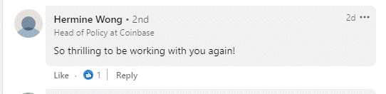 Forward to February 2022: in another round through the Revolving Door: Mr. Bauguess reunited and was congratulated by his SEC friends for his new job as V.P. of Global Regulatory Policy at Coinbase (never hurts to keep your ‘friends w/federal benefits’ [formerly] close). Attorney Hermine Y. Wong exited the SEC Revolving Door for Coinbase in late 2018, shortly after she was featured in my Whistleblower statement. Meanwhile, Robert Michael Willis had achieved his promotion described in my Whistleblower statement and congratulated the team. Mr. Griffin kept his friend Dr. Bauguess close, retaining him on the U. Texas payroll as a Visiting Senior Scholar and Clinical Associate Professor at the McCombs Salem Center for Policy (see LinkedIn posts below).