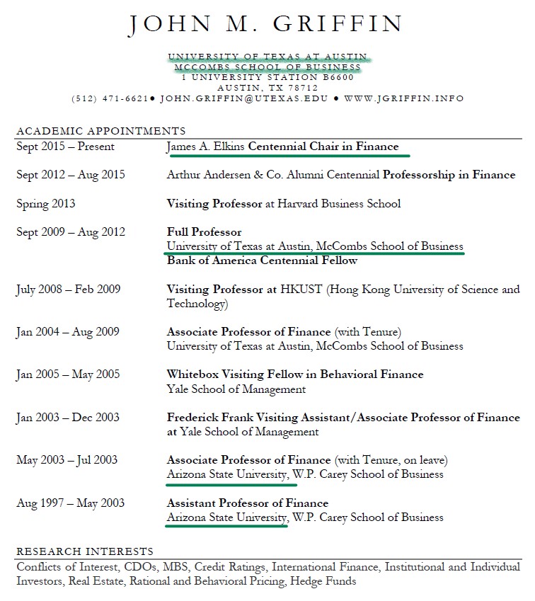 On December 19, 2018, Integra’s DERA contract work product, the SEC’s credit rating analysis program, was publicly questioned by Reuters. Two days earlier, an SEC Press Release announced Mr. Bauguess’s departure from the SEC. His landing spot: Mr. Griffin’s McCombs School of Business, as Director of its Salem Center for Policy, and Clinical Associate Professor. #HookEm.